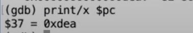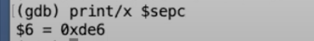我们打印程序计数器(Program Counter),确实是我们期望的位置0xde6。