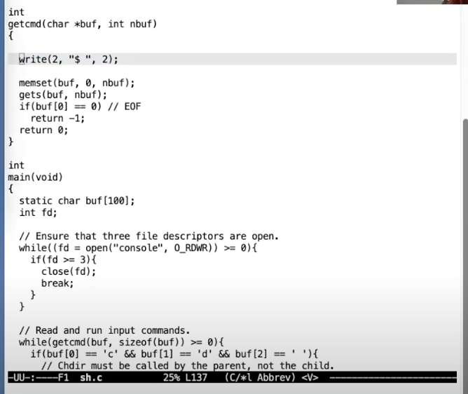 我们将跟踪一个XV6的系统调用,也就是Shell将它的提示信息通过write系统调用走到操作系统再输出到console的过程。