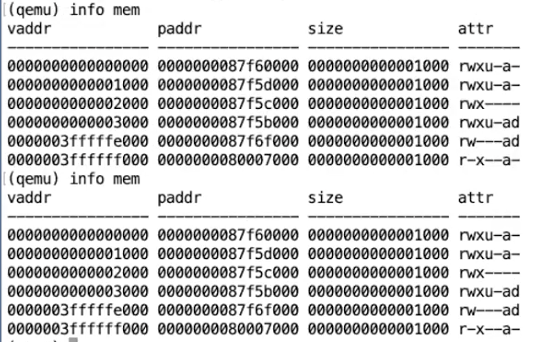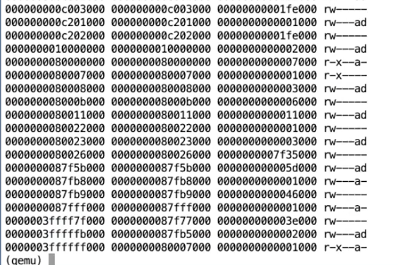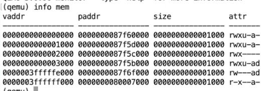但幸运的是,在QEMU中有一个方法可以打印当前的page table。