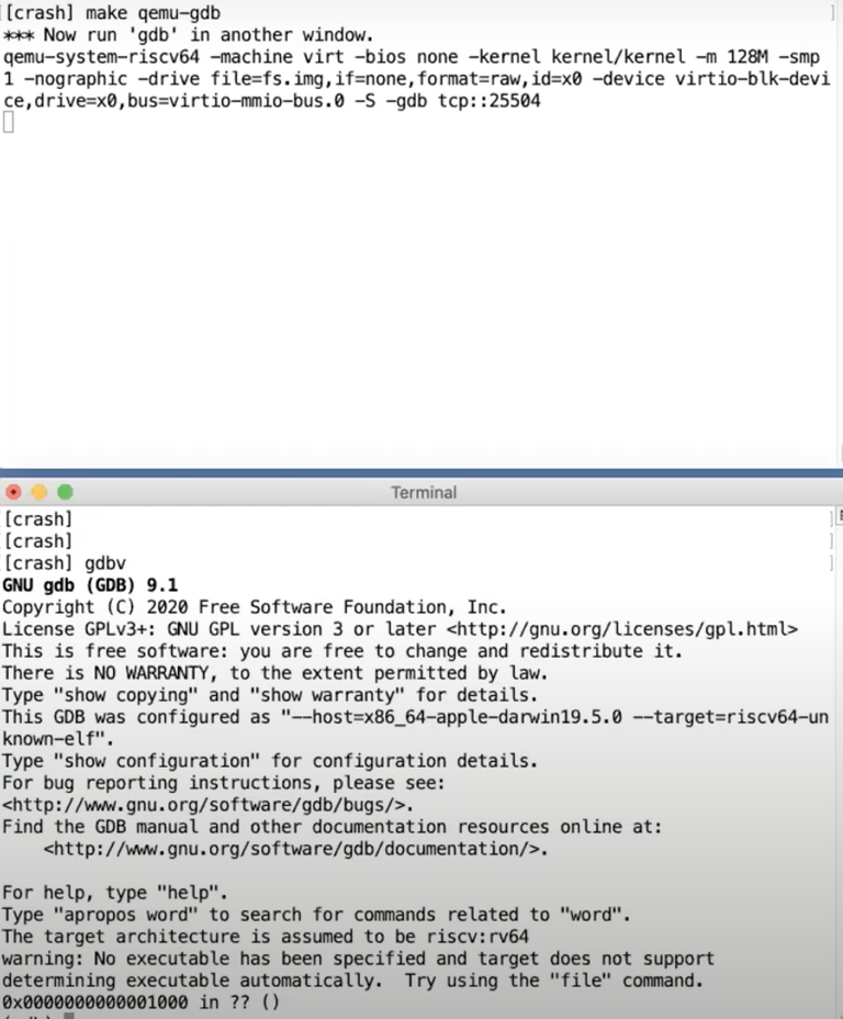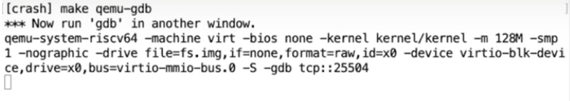 上图中选中的行,是一个write系统调用,它将“$ ”写入到文件描述符2。接下来我将打开gdb并启动XV6。