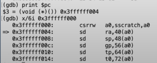 - 我们先将这个地址里的数值保存在t0寄存器中,之后再将t0寄存器的数值保存在SSCRATCH寄存器中。