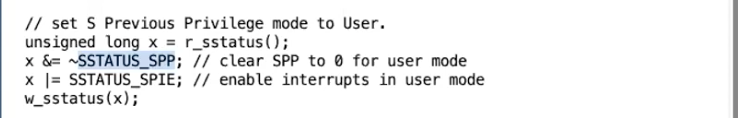 - 我们需要将mode改成supervisor mode,因为我们想要使用内核中的各种各样的特权指令。