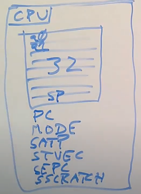 - 还有一堆控制CPU工作方式的寄存器,比如SATP(Supervisor Address Translation and Protection)寄存器,它包含了指向page table的物理内存地址(详见4.3)。